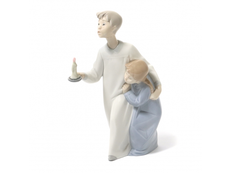 Фарфоровая фигура (статуэтка) "Мальчик с девочкой в сорочке" (Дети со свечой). Ручная подглазурная роспись.