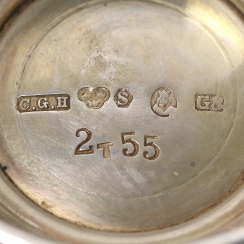 Height: 5.8 cm, diameter the of top: 4.3 cm. Volume: 30 ml. Weight: 38 grams of silver 830 fineness.