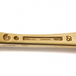 Надпись "GEORG JENSEN" в овале, обрамленная точками – клеймо дизайнерского дома "Georg Jensen", используется с 1945 года по настоящее время. Разработанный дизайн Annelise Bjorner. Клеймо "Sterling Denmark" удостоверяет, что изделие выполнено в Дании из серебра 925 пробы.