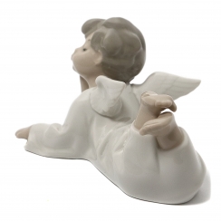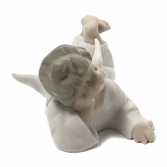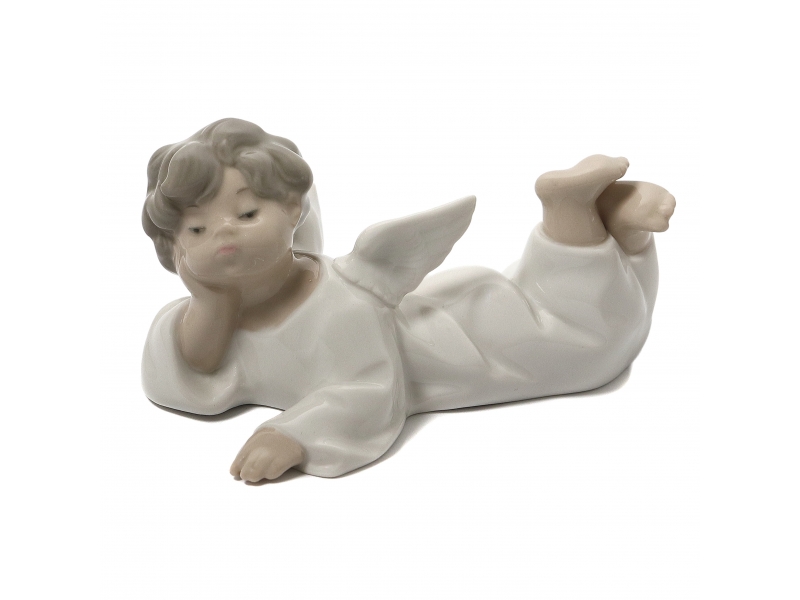 Фарфоровая фигура (статуэтка) "Лежащий ангел". Ручная подглазурная роспись.