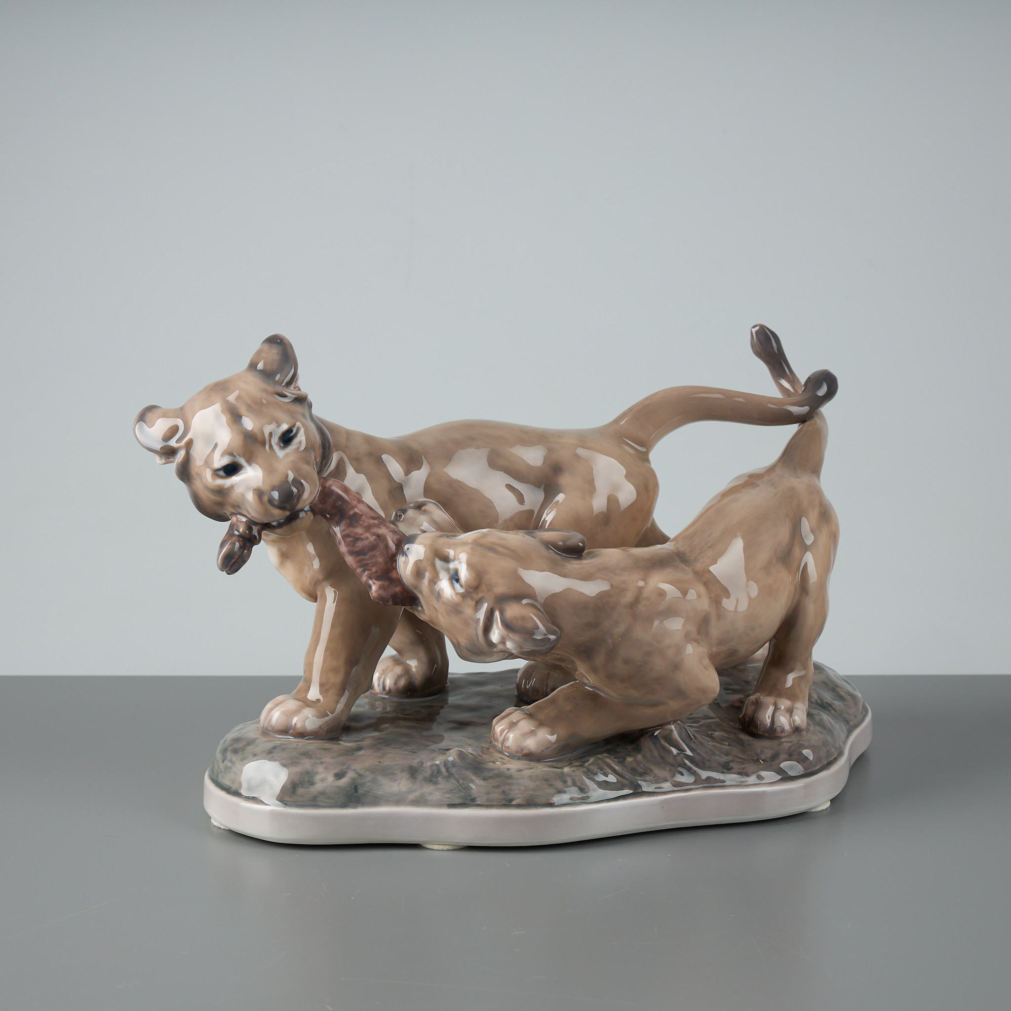 Пара львят с добычей, высота 18,3 см, основание 29,3 х 15,5 см, 2 сорт, DJ_1274![]() |
