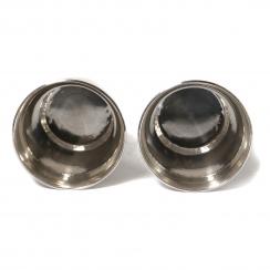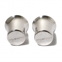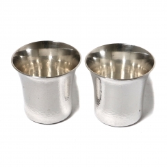 Высота: 5,3 см, диаметр верха: 5,5 см. Объём: 60 мл. Общий вес: 117 граммов серебра 925 пробы. =============================== Silver vodka cups (shot cups), 2 pcs, forging.