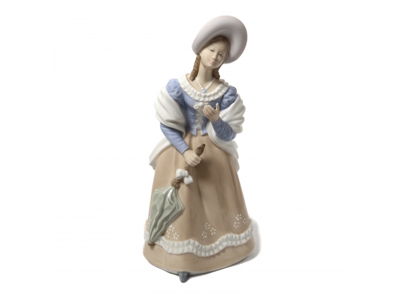 Фарфоровая фигура (статуэтка) "Изысканная леди" (Девушка с зонтом). Ручная подглазурная роспись.