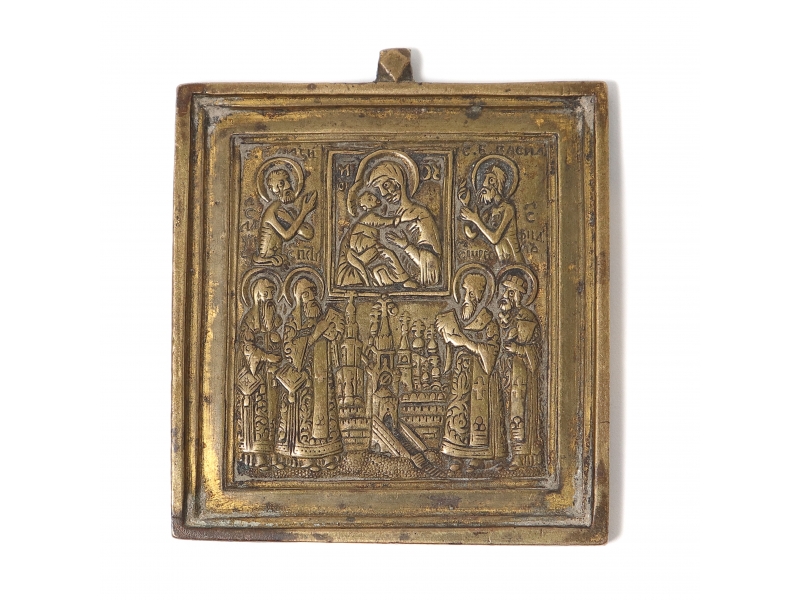 Литая икона "Поклонение иконе Богоматери Владимирской".
