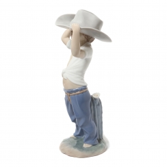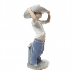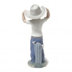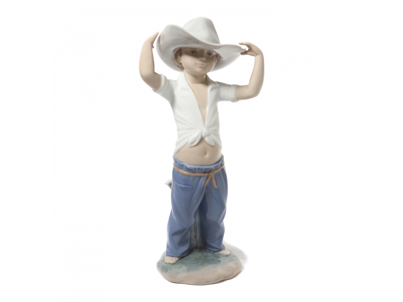 Фарфоровая фигура (статуэтка) "Мальчик в синих штанах в сомбреро". Ручная подглазурная роспись.