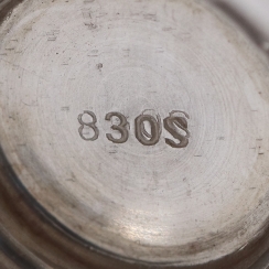 Height: 10 cm, base diameter: 3.5 cm. Weight: 43 grams of silver 830 fineness.
