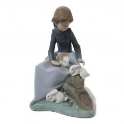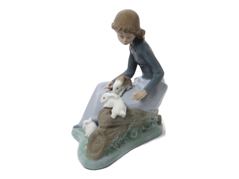 Фарфоровая фигура (статуэтка) "Девочка с кроликами". Ручная подглазурная роспись.