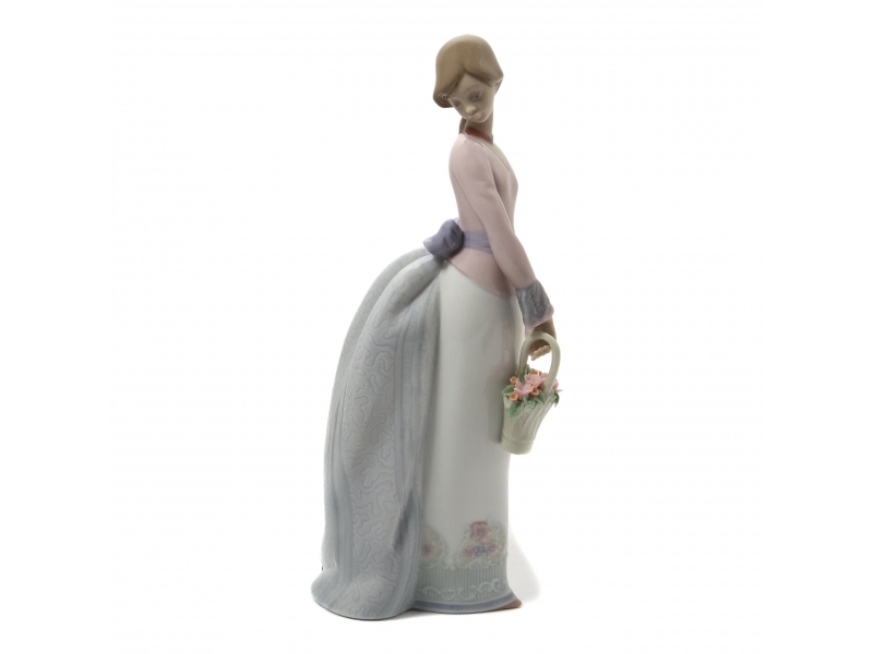 309984 - Девушка с цветами в корзине, высота 24,5 см, длина 9,5 см, ширина 8,5 см, Испания, Ladro