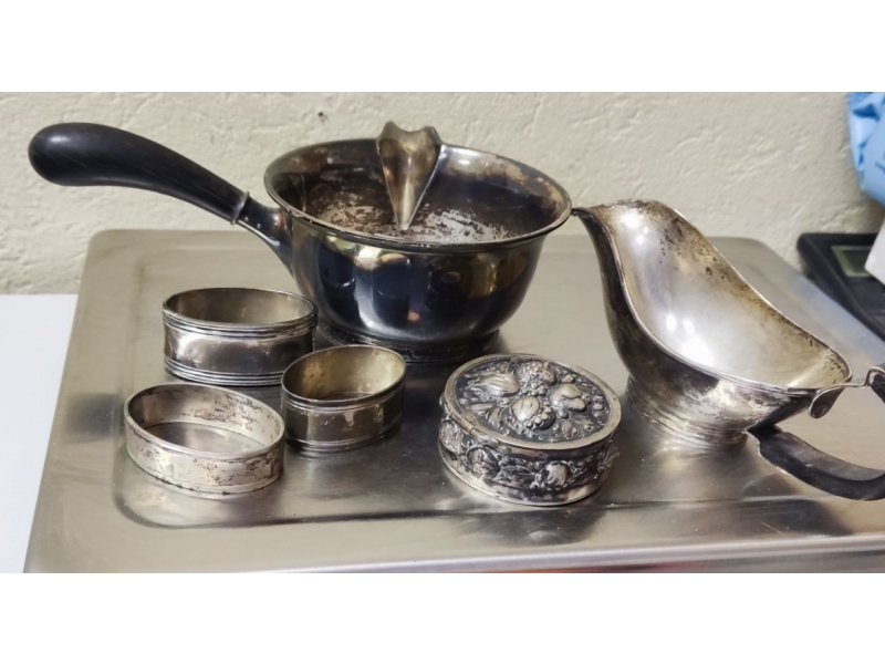 122545 - Соусник в виде ковшика, 186 гр, 826 пр, высота ковша 5,7 см, диаметр верха 11,5 см, длина ручки 9,5 см 284430 - Соусник, 93 гр, 826 пр, максимальная длина 16,3 см, ширина 6 см, высота по носик 6 см 348835 - Кольцо для салфеток, 27 гр, 830 пр, длина 5 см, ширина 3,3 см, высота 1,4 см 270997 - Массивное кольцо для салфеток, 53 гр, 830 пр, длина 5,5 см, ширина 3 см, высота 2,3 см 345892 - Кольцо для салфеток, 23 гр, 925 пр, длина 5 см, ширина 3,3 см, высота 2 см 357622 - Небольшая шкатулка или таблетница, 60 гр, 830 пр, диаметр 5,5 см, максимальная высота 3 см