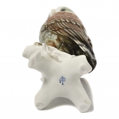 Небольшая печная трещина на листе. =========================== Porcelain figurine "Long-eared owl". Hand-painted underglaze.