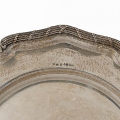 - Тарелка (подставка или поднос), 197 гр, 830 пр, максимальный диаметр 19,5 см, диаметр дна 12,3 см