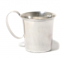 Высота: 5,7 см, диаметр верха: 6 см. Объём: 100 мл. Вес: 51 грамм серебра 830 пробы. =============================== Small silver mug.
