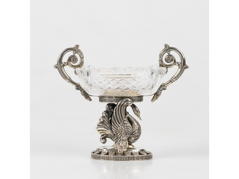 Максимальная высота 18,8 см, длина 22,5 см, ширина 11 см. Размеры основания 10,2 х 7,3 смВысота по край чаши 15 см, размеры верха чаши 15 х 11 смМикроскол на краю хрустальной чаши