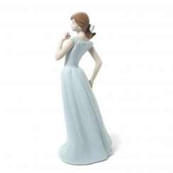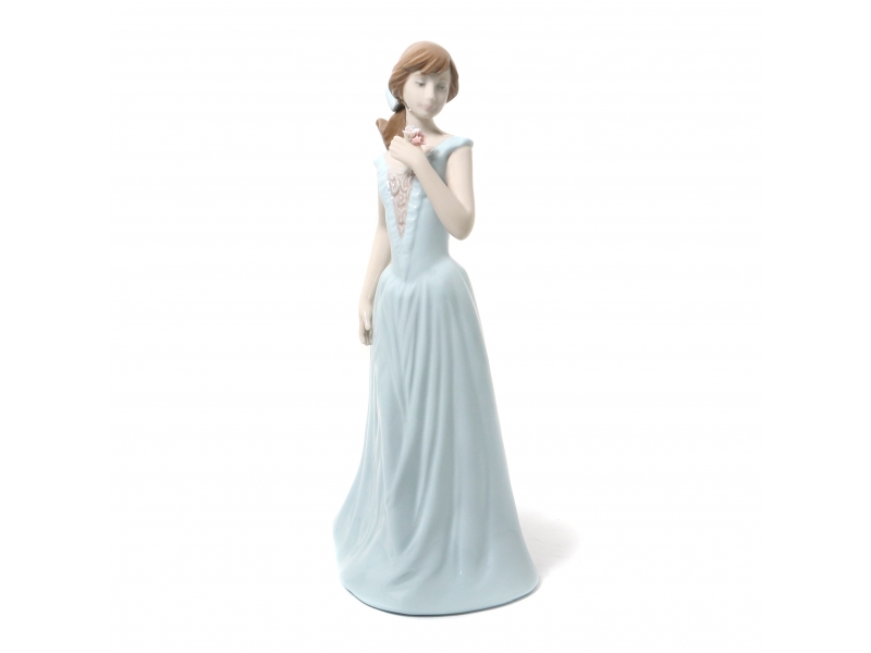 311495 - Девушка в голубом платье с цветком в левой руке, высота 27 см, длина 12 см, ширина 10,5 см, Испания, Nadal