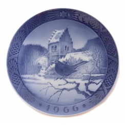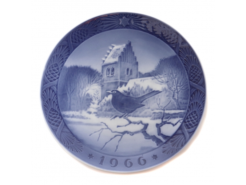 Коллекционная фарфоровая тарелка 1966 года "Черный дрозд у заснеженной церкви" (Solsort ved juletid) из серии годовых рождественских тарелок.