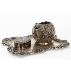 Информация о лоте 315345 - Поднос, Франция, 260 гр, 950 пр, максимальные размеры 19,8 х 16 см 331500 - Таблетница, 51 гр, 800 пр, 6,8 х 5 х 2 см 362226 - Ваза в виде птицы, 132 гр, 800 пр, максимальная длина 12,3 см, ширина 7,5 см, высота 7,5 см, |