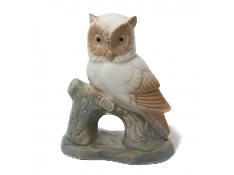 Фарфоровая фигура (статуэтка) "Сова на ветке". Ручная подглазурная роспись.