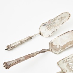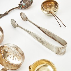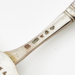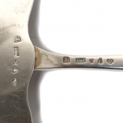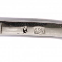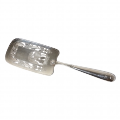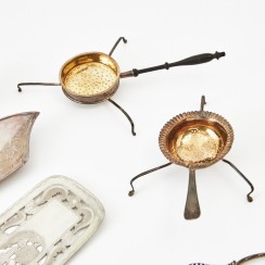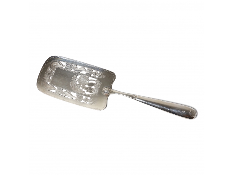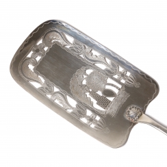 ![]() 264195 - Щипцы, 28 гр, 12 лотов, 15,4 см![]() 337274 - Ситечко, 35 гр, длина 22,7 см, диаметр 5,4 смнесколько мелких вмятинок на черпаке, скол на кончике деревянной ручки369494 - Ложка-ситечко. Серебро, позолота, эмаль. НорвегияЛожка-ситечко. Серебро, позолота, эмаль.Норвегия, г. Осло, 1888-1925 гг, мастерская David Andersen (основана в 1876 году). Длина: 11,5 см, диаметр: 3,7 см. Вес: 24 грамма серебра 925 пробы. Сколы на эмали. ============================== Spoon-strainer. Silver, пilding, enamel. Norway, Oslo, the 1888-1925, workshop David Andersen (founded in 1876). Length: 11.5 cm, diameter: 3.7 cm. Weight: 24 grams of sterling silver 925 fineness. Chips in the enamel. ![]() 283505 - Серебряное ситечко на носик чайника. Швеция, 1792 год.Серебряное ситечко на носик чайника, позолота.Швеция, г. Чепинг, 1792 год. Диаметр: 4 см, высота по край: 3 см. Вес: 18 граммов серебра 830 пробы. =========================== Silver strainer on the spout of the teapot, gilding. Sweden, Köping, year 1792. Diameter: 4 cm, height at the edge: 3 cm. Weight: 18 grams of silver 830 fineness. ![]() 344529 - Ситечко на ножках, 23 гр, серебро 830 пр, длина (без ножек) 16 см, длина ножек 5 см, диаметр 5,5 смточечная вмятинка на дне, пайка в районе ручки и одной ножки291898 - Цельносеребряная сервировочная лопатка. Швеция, 1839 годЦельносеребряная сервировочная лопатка.Швеция, г. Хальсинборг, 1839 год, мастерская Alexander Munthe (годы работы: 1835-1853). Длина: 27,5 см. Вес: 90 граммов серебра 830 пробы. На лопатке есть мелкие коррозийные пятнышки. С гравировкой. За дополнительную плату гравировка может быть удалена. ======================== Solid silver cake pie server (spatula). Sweden, Halsinborg, 1839, workshop Alexander Munthe (worked since 1835 to 1853). Length: 27.5 cm. Weight: 90 grams of silver 830 fineness. There are small corrosion spots on the blade. There is engraving. ![]() 389443 - Цельносеребряная сервировочная лопатка, 88 гр, 830 пр, 31,2 см![]() |