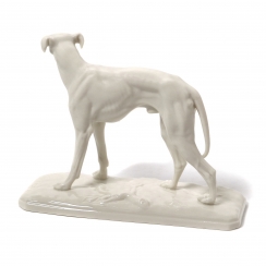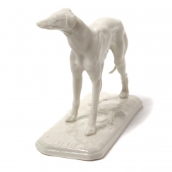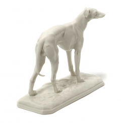 Фарфоровая фигура (статуэтка) "Борзая". Нерасписанный белый фарфор. Белая глазурь.