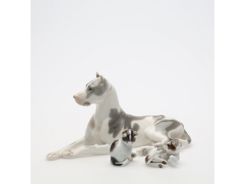 - Лежащий дог, СССР, ЛФЗ, высота 13 см, длина 24,5 см