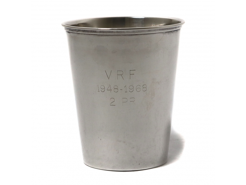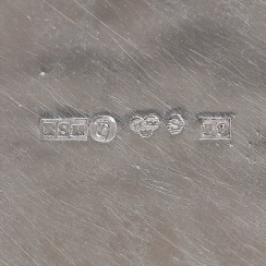 Height: 8.5 cm, diameter the of top: 7.3 cm. Volume: 250 ml. Weight: 57 grams of silver 830 fineness.