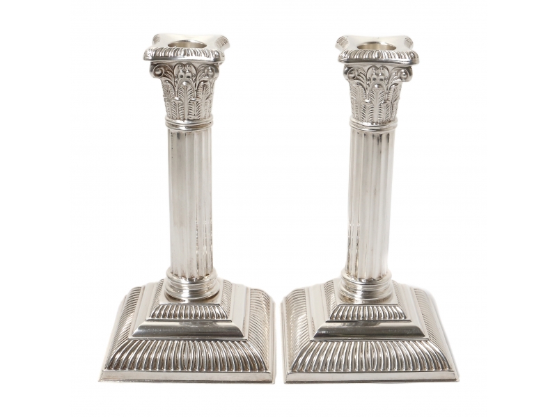 Серебряные подсвечники в виде коринфских колонн, 2 шт.