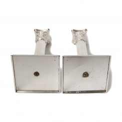 Height: 17.5 cm, base size: 9.5 x 9.5 cm, candle hole diameter: 1.8 cm. Total weight with weighting: 616 grams, silver of 830 fineness.