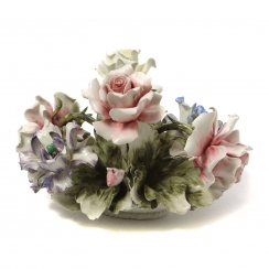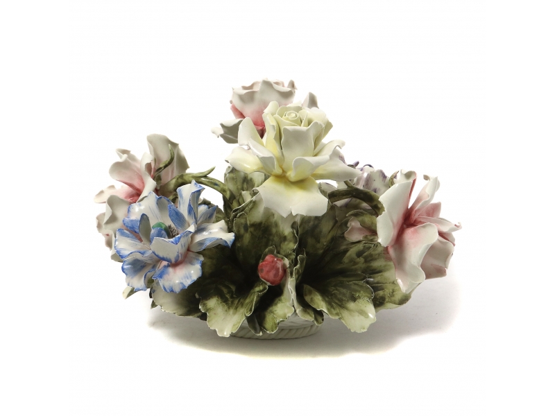 Скол на одном листе и несколько микросколов на цветах. ========================== Arrangement of porcelain flowers. Hand painted.