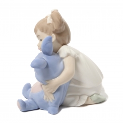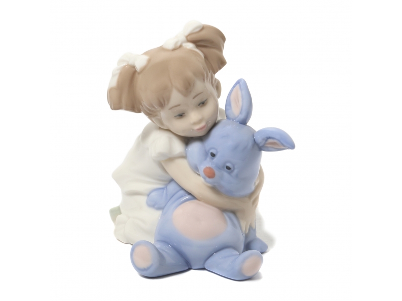 313031 - Девочка с плюшевым зайцем, высота 13,4 см, длина 13,2 см, ширина 10 см, NAO by Lladro