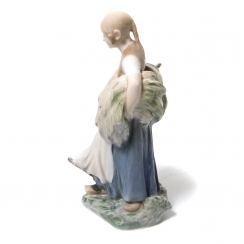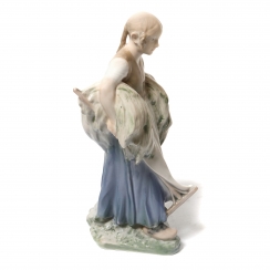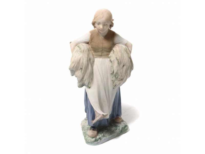 Фарфоровая фигура (статуэтка) "Девушка с граблями и сеном". Ручная подглазурная роспись.