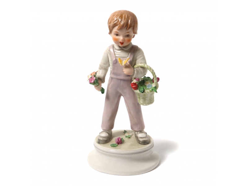 313319 - Мальчик с цветами и бабочкой, высота 20 см, диаметр основания 9,5 см, Германия, Goebel