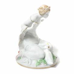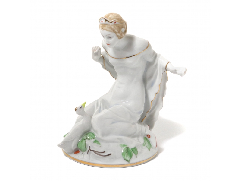 Фарфоровая фигура (статуэтка) "Принцесса Элиза и лебедь" по мотивам сказки Г.Х. Андерсена "Дикие лебеди". Ручная роспись.
