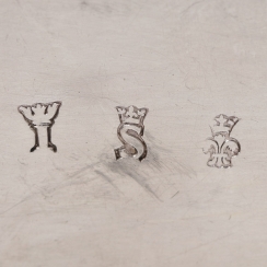Длина: 9,5 см, ширина: 6,3 см, высота: 6,8 см. Вес: 178 граммов серебра не ниже 800 пробы.