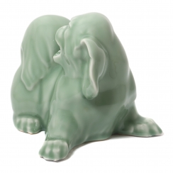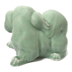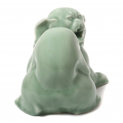 Фарфоровая фигура (статуэтка) "Рычащий пекинес". Селадоновая глазурь.
