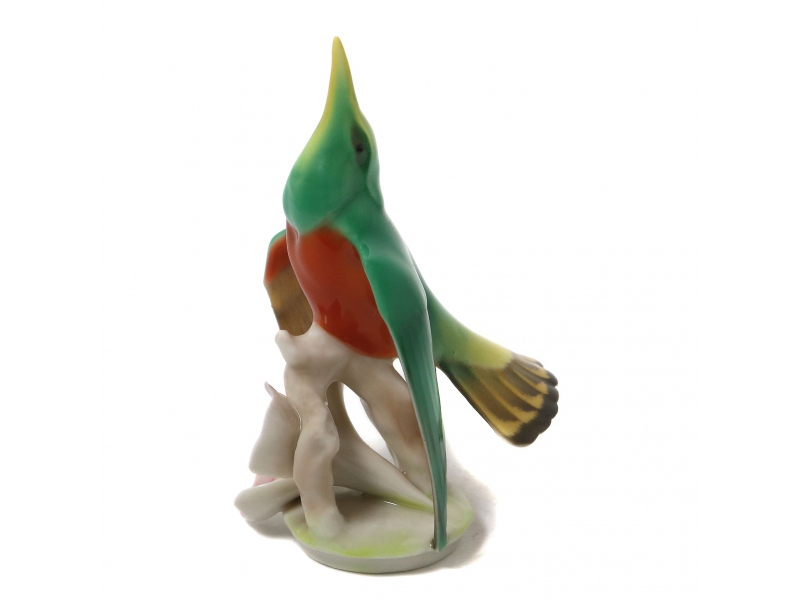 Фарфоровая фигура (статуэтка) "Колибри над цветком". Ручная подглазурная роспись.