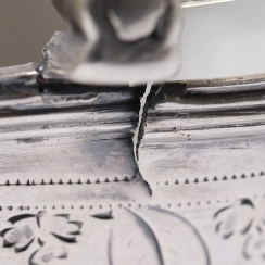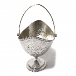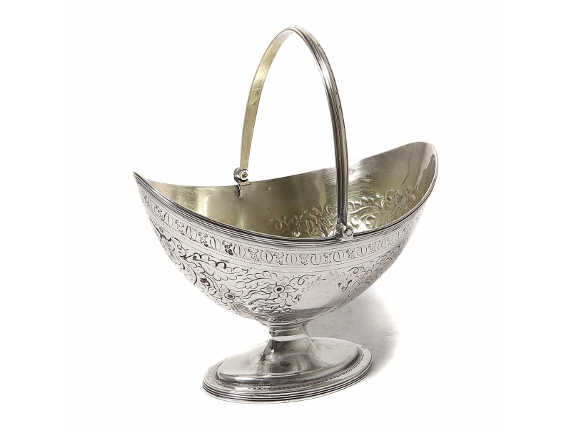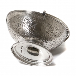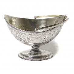 Серебряная ваза с перекидной ручкой, декорированная растительным орнаментом.