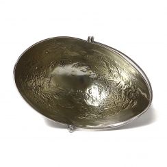 Небольшая вмятинка на боку, трещинка в районе перепления ручки (небольшой надрыв не влияющий на функционал), за дополнительную плату могу запаять. ======================= Silver bowl with flip handle, decorated with floral ornaments.