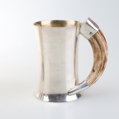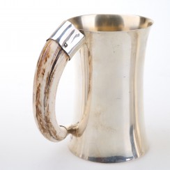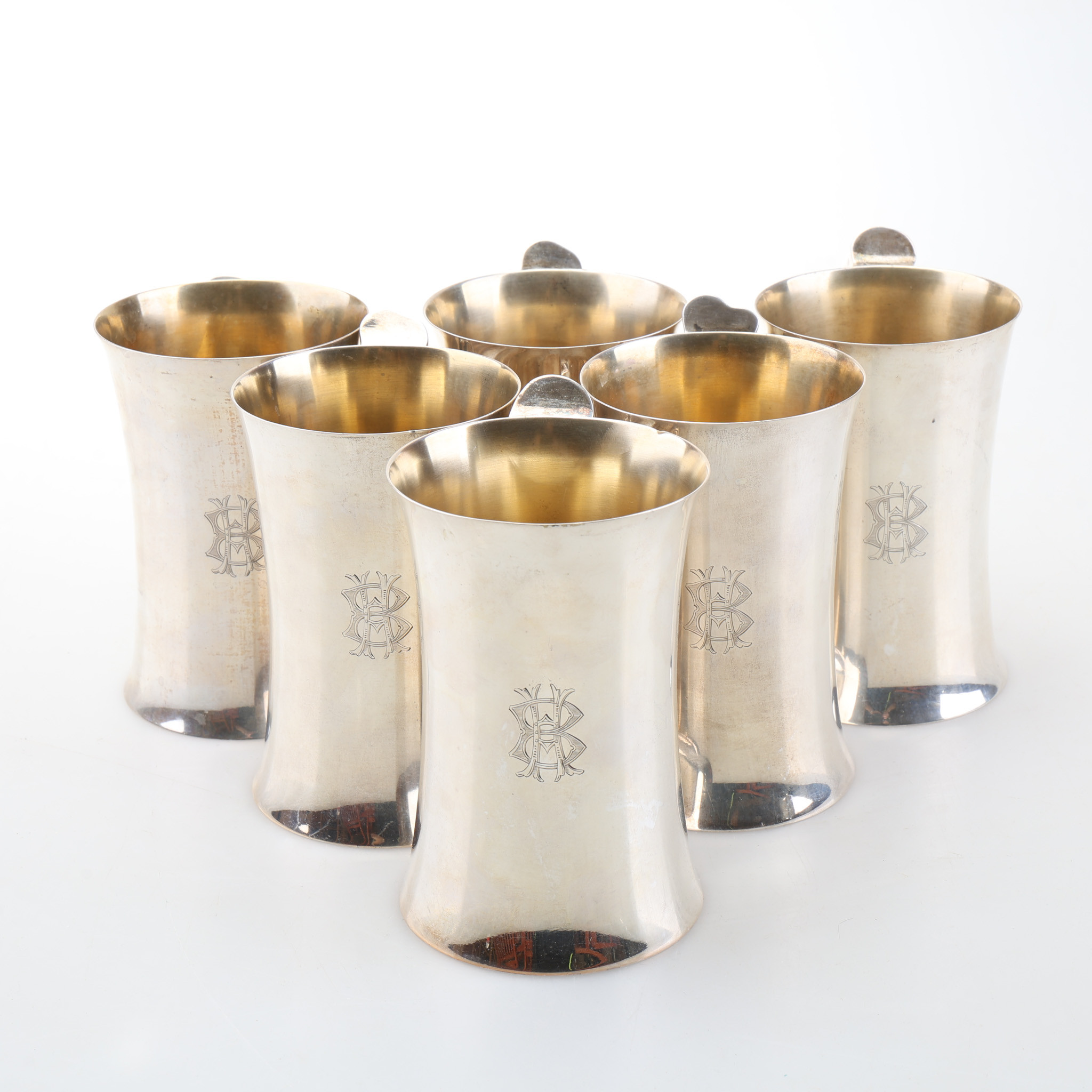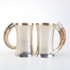 316669 - Серебряные кружки с ручками из клыка, 6 шт, общий вес 2081 гр, серебро 800 пр, высота 13 см, диаметр основания и верха 8,4 см