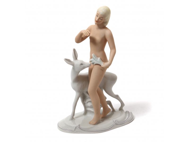 Эта же фигура выпускалась фабрикой Wallendorf, с номером модели 789. ================================ Porcelain figurine "Naked girl with roe deer". Hand-painted.