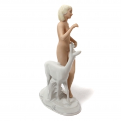 Фарфоровая фигура (статуэтка) "Обнаженная девушка с косулей". Ручная роспись.