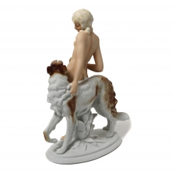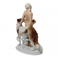 Фарфоровая фигура (статуэтка) "Обнаженная девушка с русской борзой". Ручная роспись.