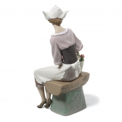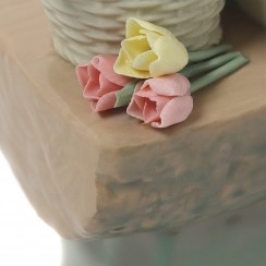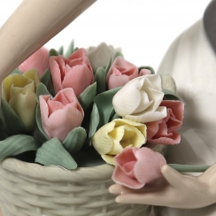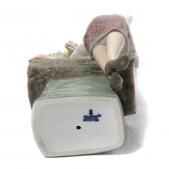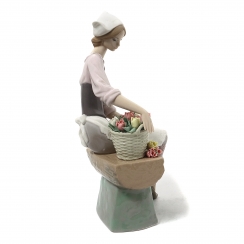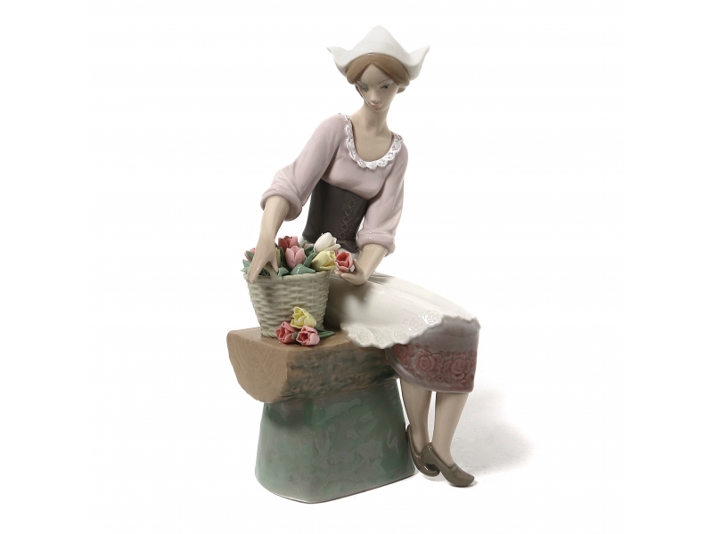 Фарфоровая фигура (статуэтка) "Голландская девушка" (Девушка с корзиной тюльпанов на скамейке). Ручная подглазурная роспись.