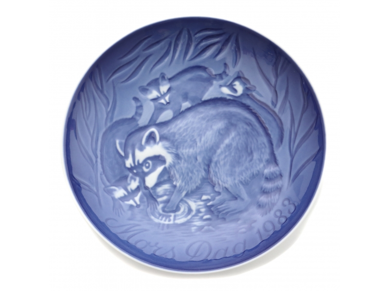 Блюдце первого сорта. Без сколов, повреждений и без реставраций. ================================ Wall porcelain plate "Raccoon with Cubs" (Vaskebjern med unger) from a series of "Mother's Day".