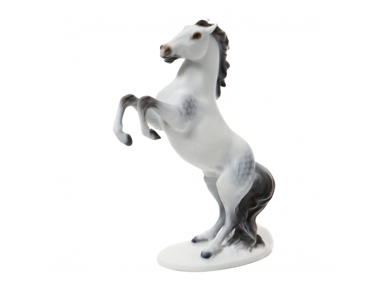 Фарфоровая фигура (статуэтка) "Вздыбленный конь". Ручная подглазурная роспись.