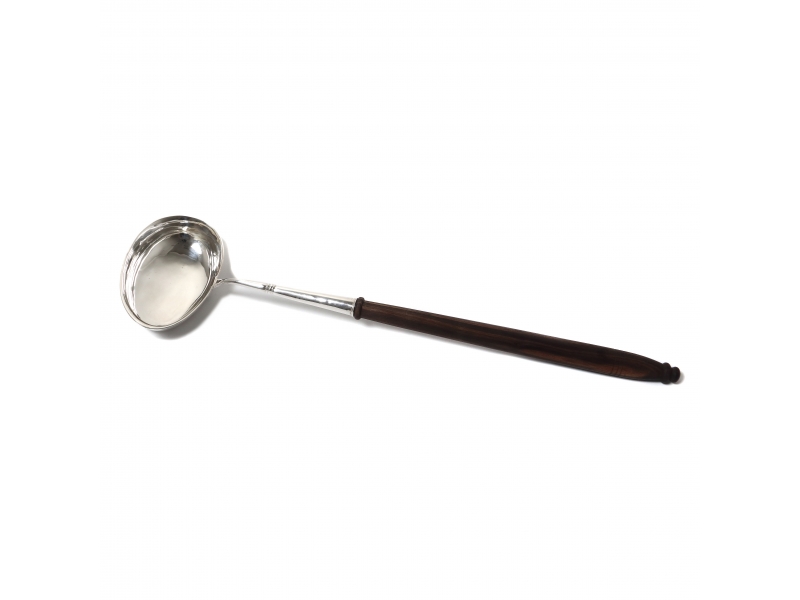 Длина: 41 см. Общий вес: 134 грамма, серебро 813 пробы. =============================== Silver ladle with wooden handle.