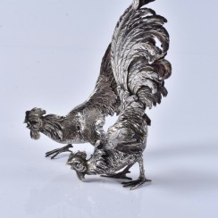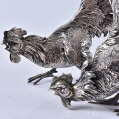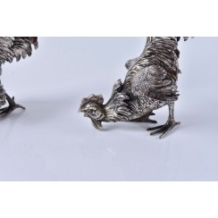 Две декоративные серебряные фигуры бойцовских петухов, Германия, общий вес 546 гр, 800 пр