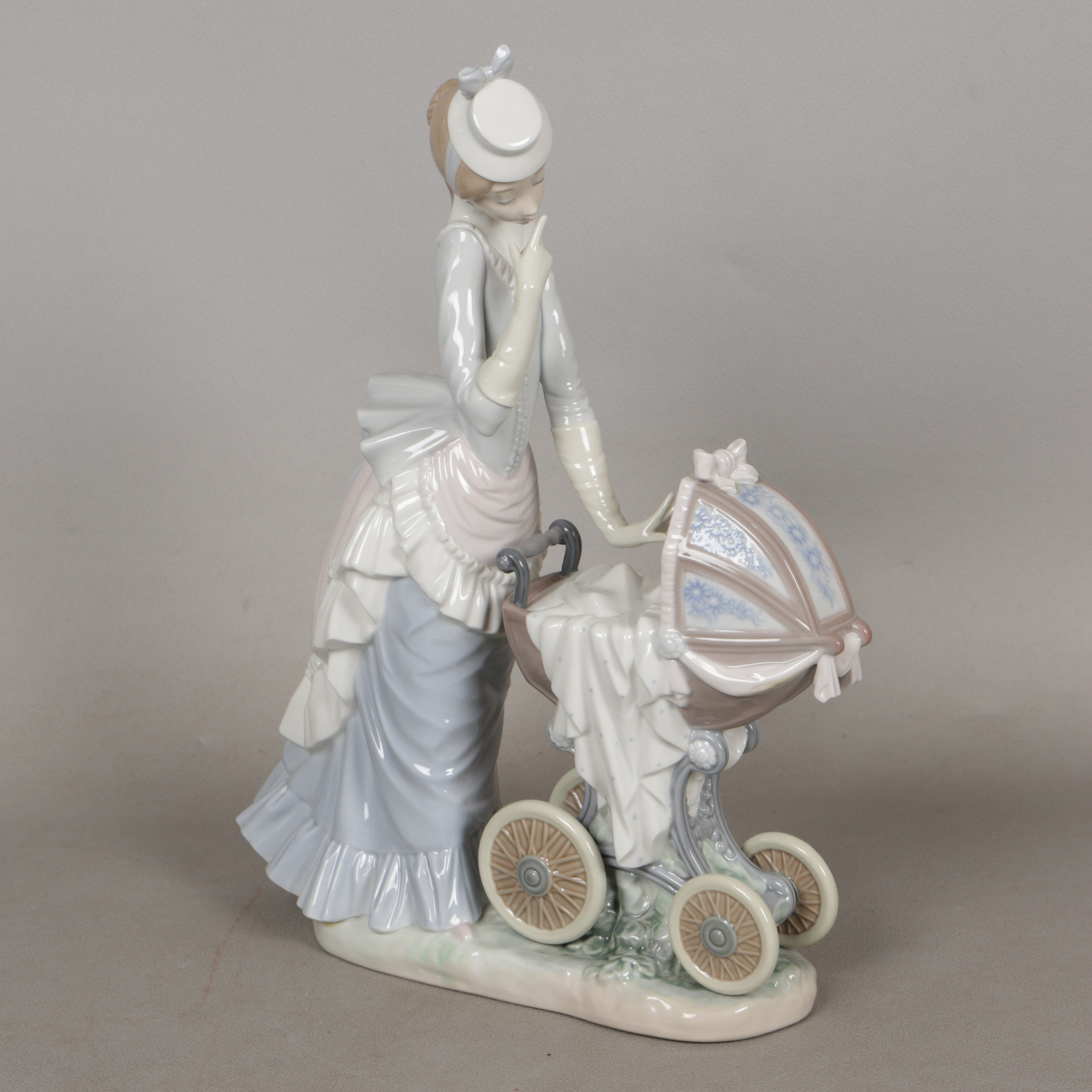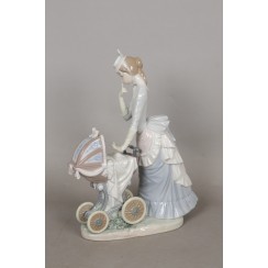 Девушка с ребенком в коляске, высота 33,5 см, максимальная длина 26,5 см, ширина 9 см, Испания, Lladro