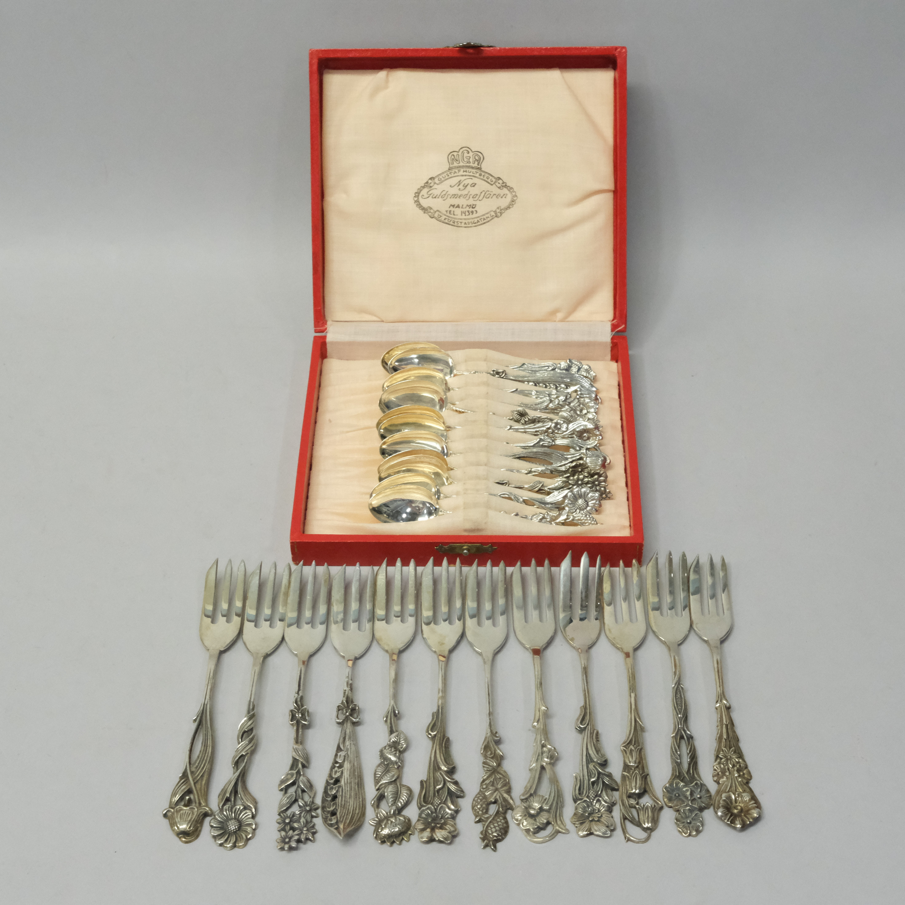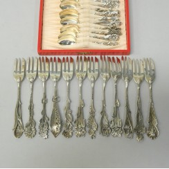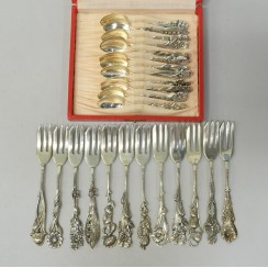 Информация о лоте 393770 - Десертные вилки, 12 шт, Цветы Швеции, 222 гр, 830 пр, 13,2 см. Коробка 307787 - Серебряные кофейные ложки, 12 шт. Швеция, 1970 год. |