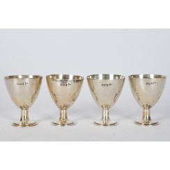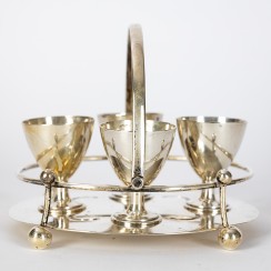 Четыре пашотницы на серебряной подставке с перекидной ручкой, общий вес 551 гр, 925 пр
