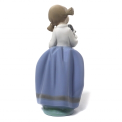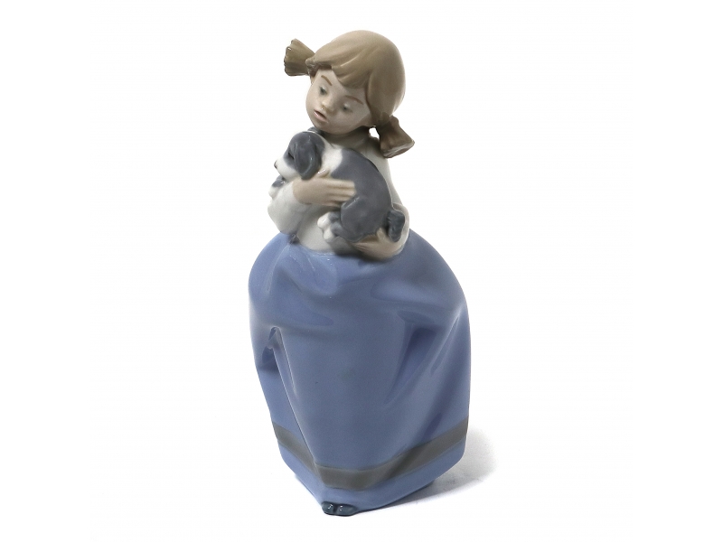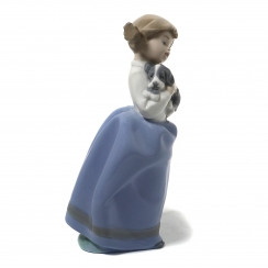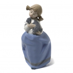 Фарфоровая фигура (статуэтка) "Девочка с сонным щенком". Ручная подглазурная роспись.